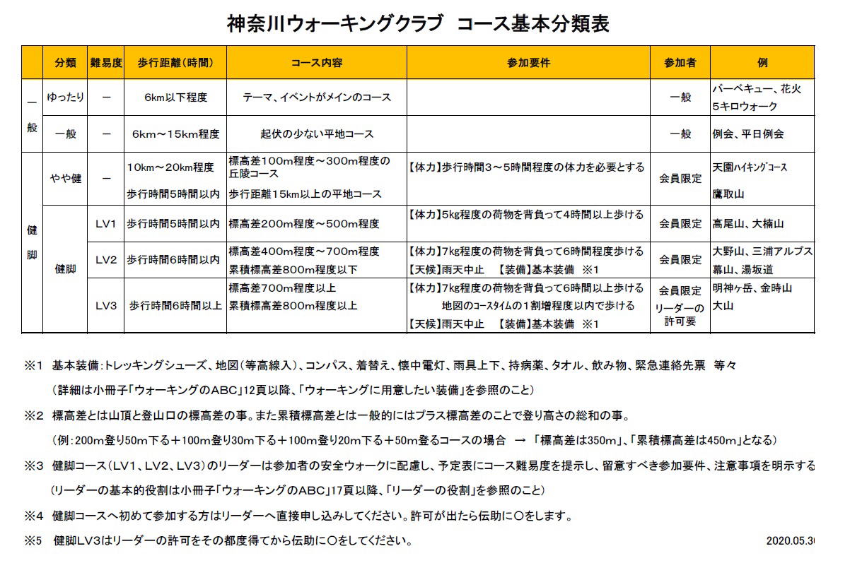 KWCコース基本分類表